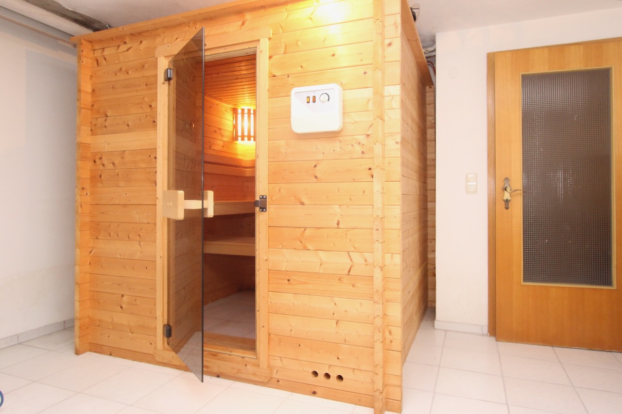 Da das Haus vollständig unterkellert ist, bieten sich auch dort verschieden Möglichkeiten, Ihre Freizeit zu gestalten. So ist z.B. der „Hobbykeller“ beheizbar. In einem weiteren Kellerraum ist bereits eine Sauna eingebaut. Für Ihre Waschmaschine ist eine Aschlußmöglichkeit in der Waschküche vorhanden.