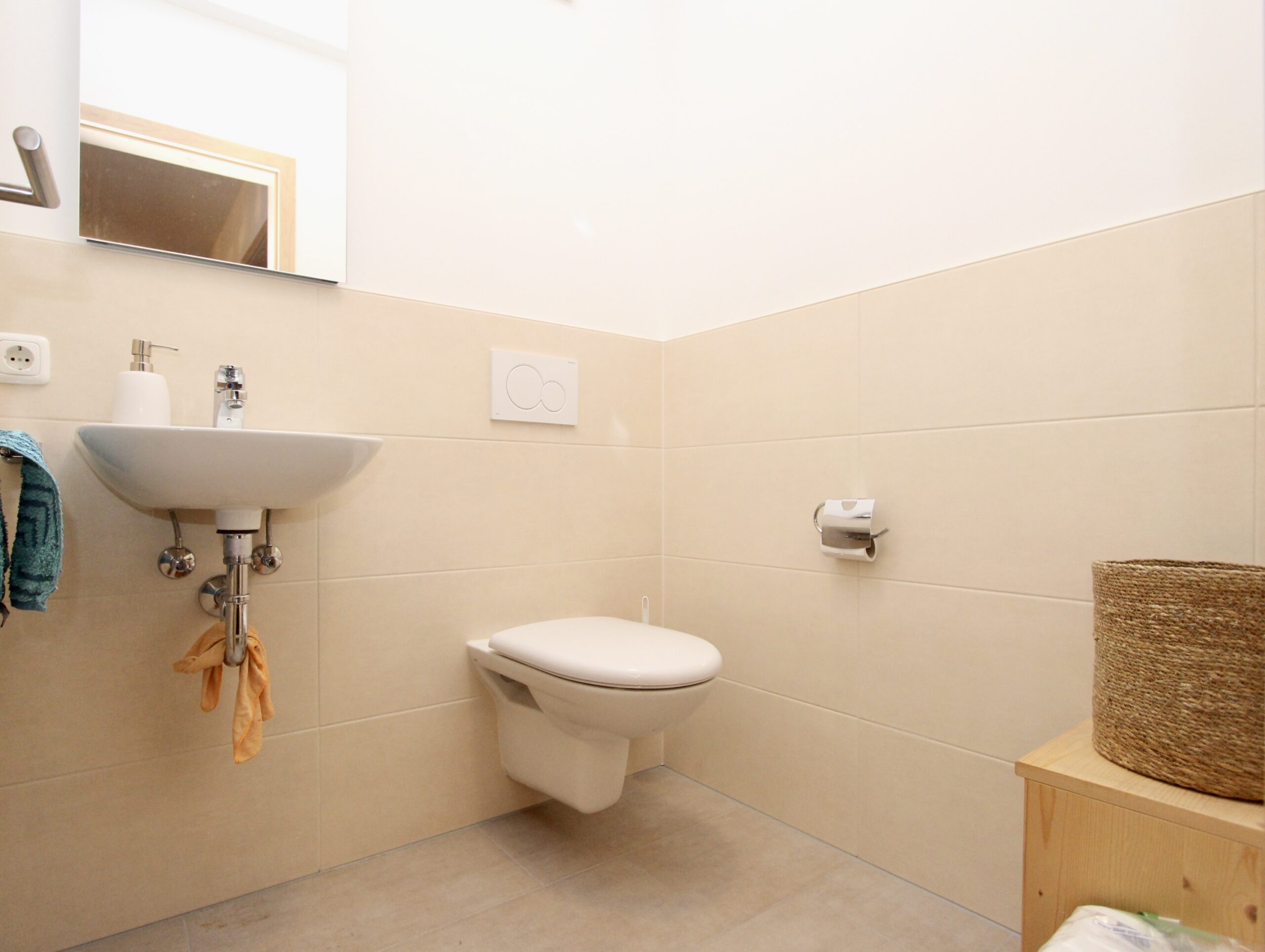 • moderne Fliesen im Bad, Gäste-WC und Abstellraum