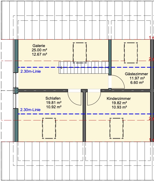 Die exklusive Massivholz-Bauweise, kombiniert mit den dreifach isolierverglasten Fenstern, einer kontrollierten Wohnraumbelüftung (mit Wärmerückgewinnung), runden das stimmige Wohnkonzept ab und erfüllen die hohen Ansprüche des Niedrigenergiestandards „KfW 55“.