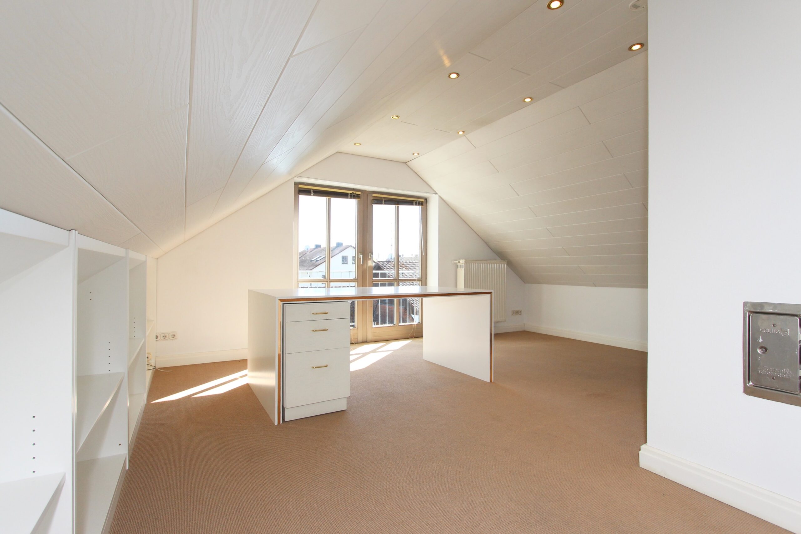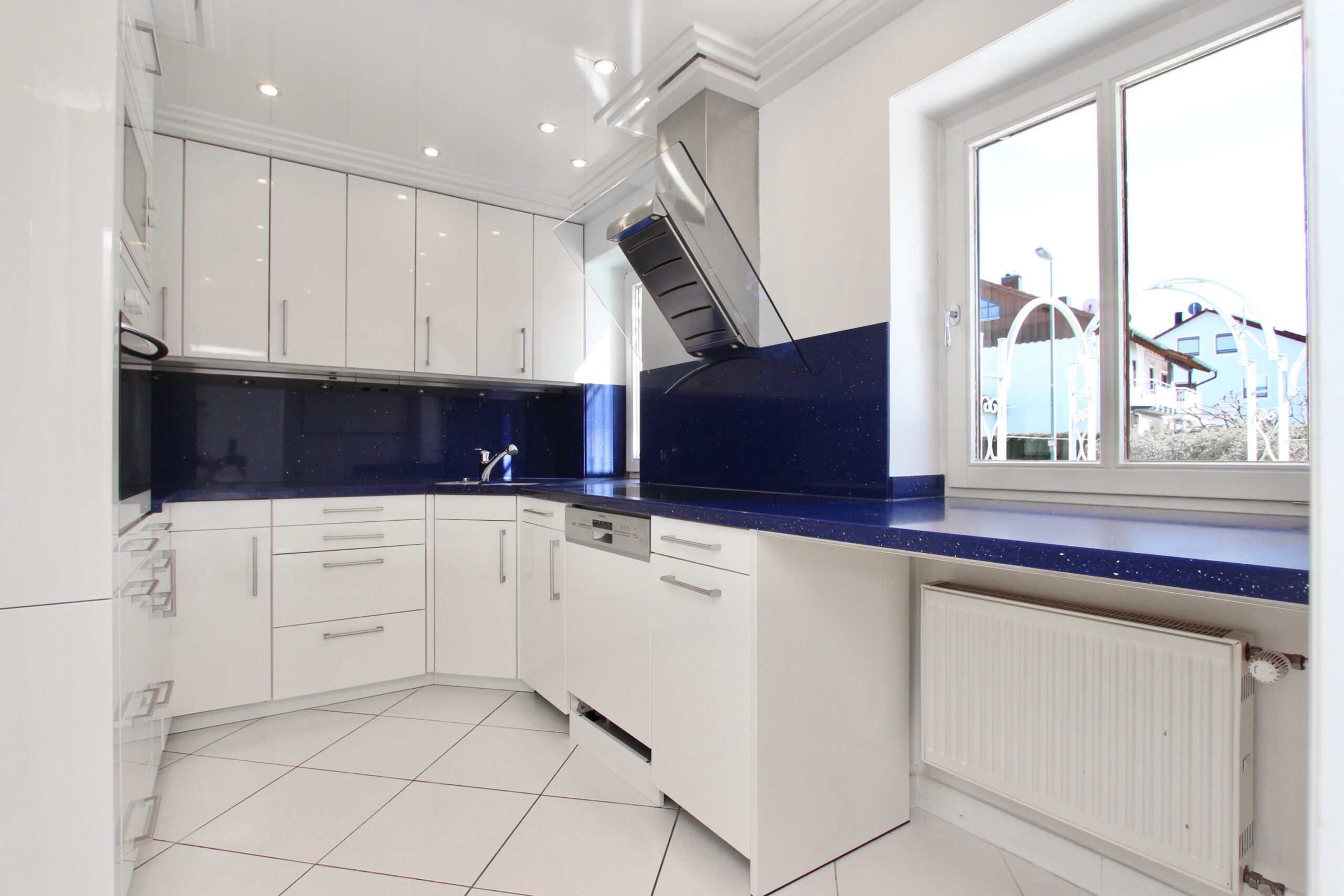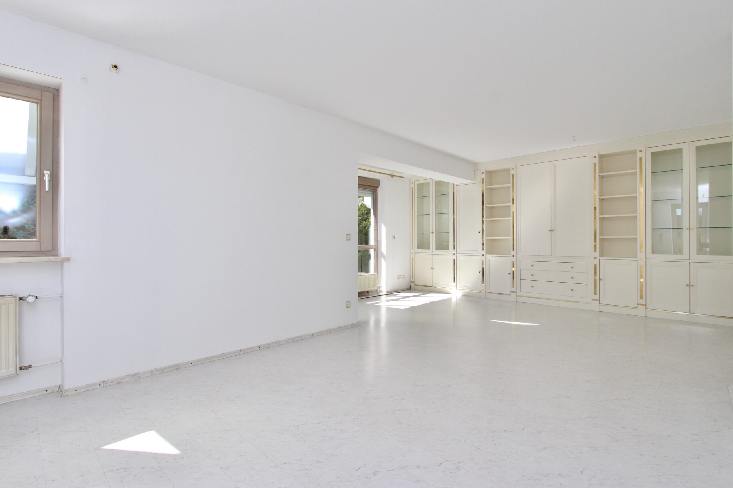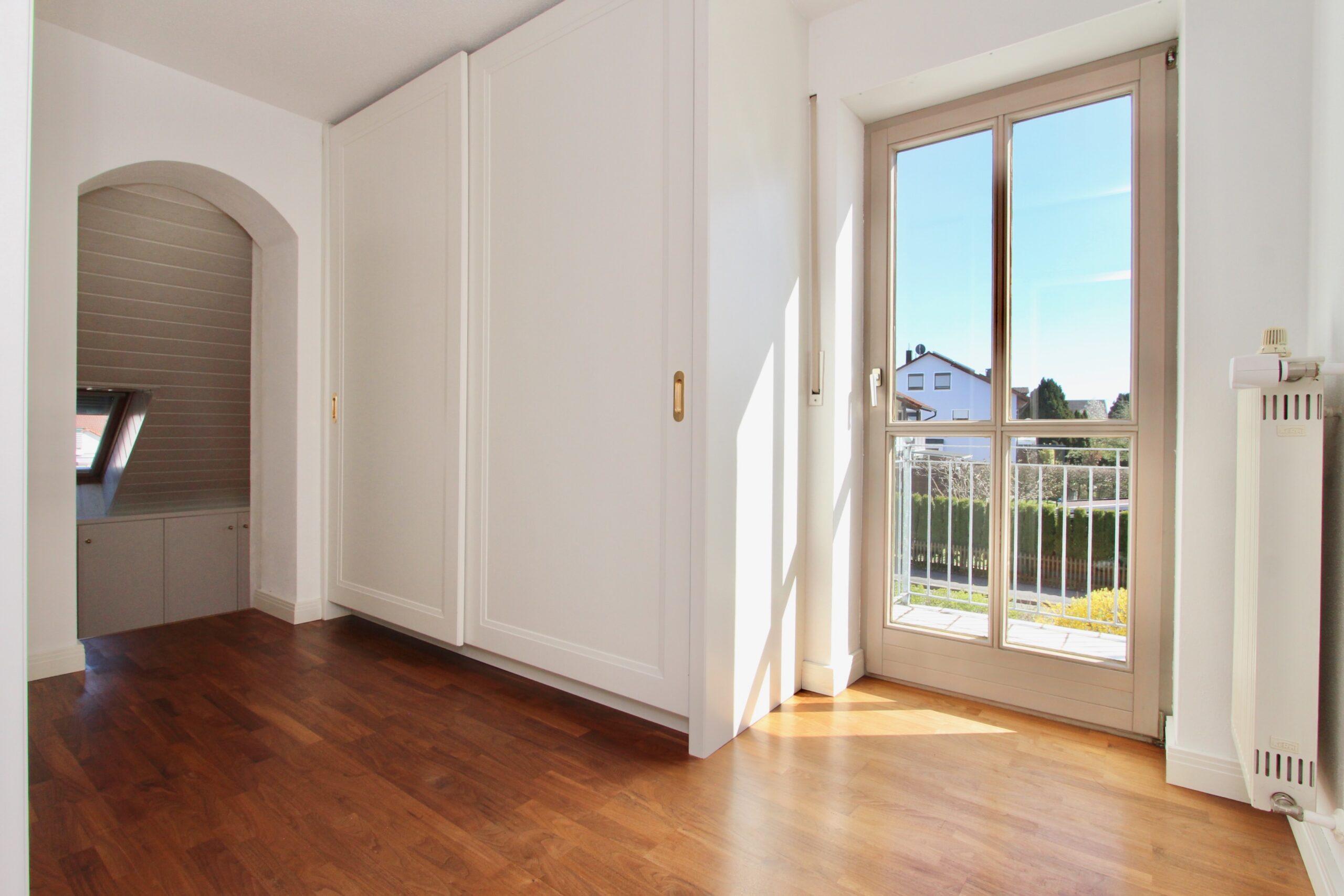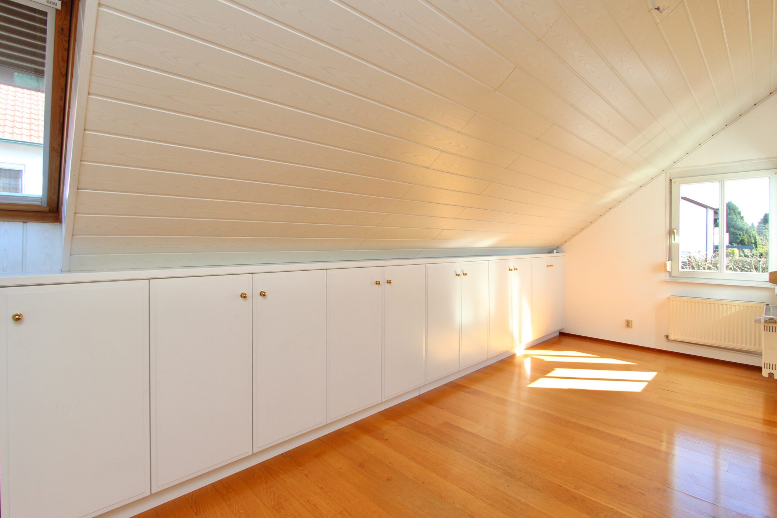 Alle vom Schreiner maßgefertigten Einbauschränke im Wohnzimmer, Schlafzimmer, Kinderzimmer und Bad sind im Kaufpreis bereits enthalten. Die zeitlose Küche mit Steinarbeitsplatte ebenfalls.