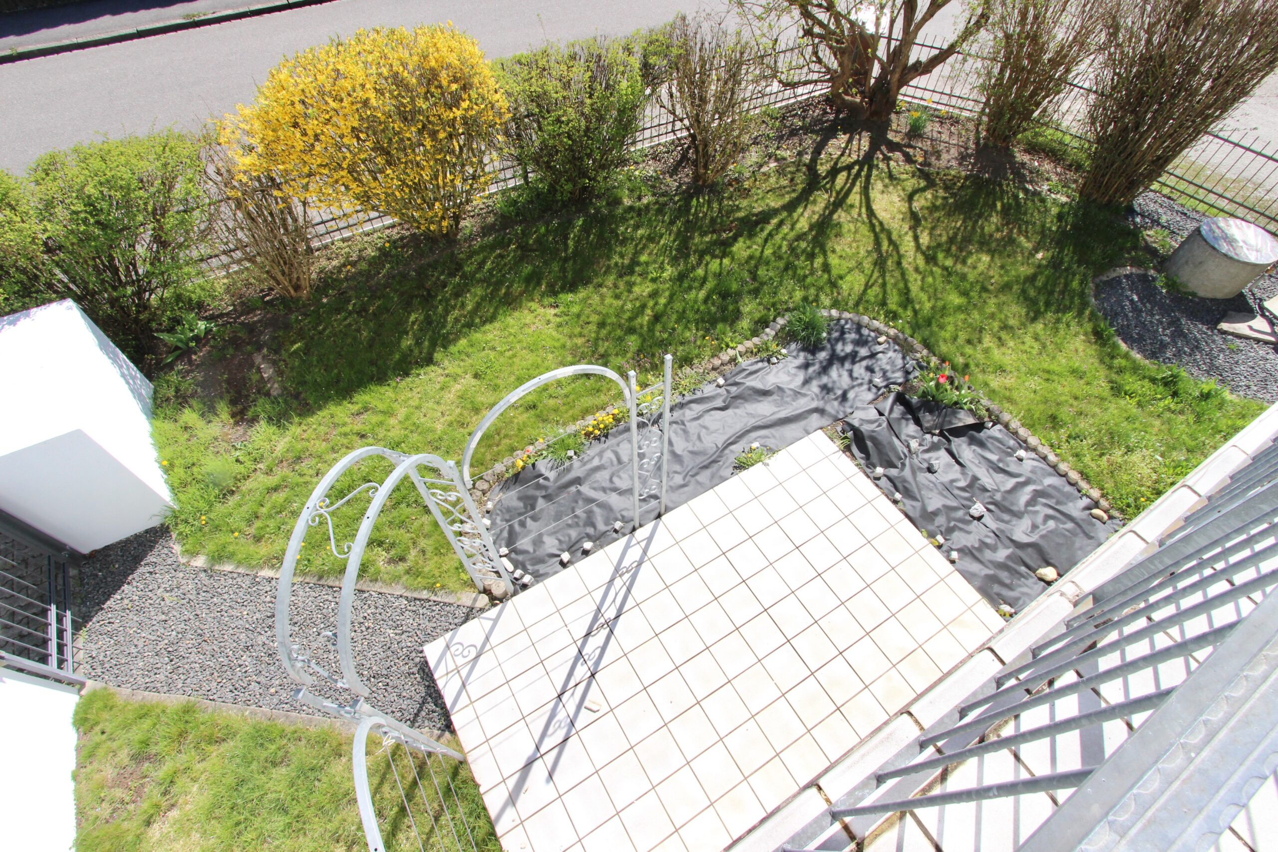 Die nach Süden ausgerichtete Terrasse kann über das Wohnzimmer betreten werden und ist Teil des schönen Gartens. Die Westterrasse ist über den an das Wohnzimmer angebauten Wintergarten zu erreichen und ist komplett überdacht.