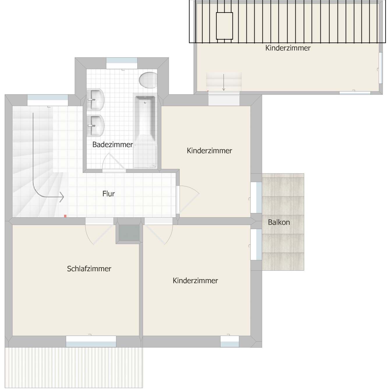 OG: Schlafzimmer, 2x Kinderzimmer, Garagenüberbau (Kinderzimmererweiterung), Tageslichtbad,